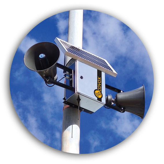 Megafonía Inalámbrica con placa solar para espacios exteriores como playas, campos de cultivo, pistas de esquí o cualquier evento o lugar al aire libre.